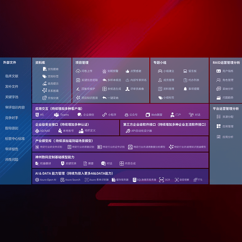 医疗器械产品上市前,,要熟悉严格与繁复评审标准,,,整理分析监管机构指导文件中的海量信息。。。企业急需一个智能化解决方案,,,,提升知识管理效率,,,,提高评审通过率,,,,以提升其市场竞争力。。。。
